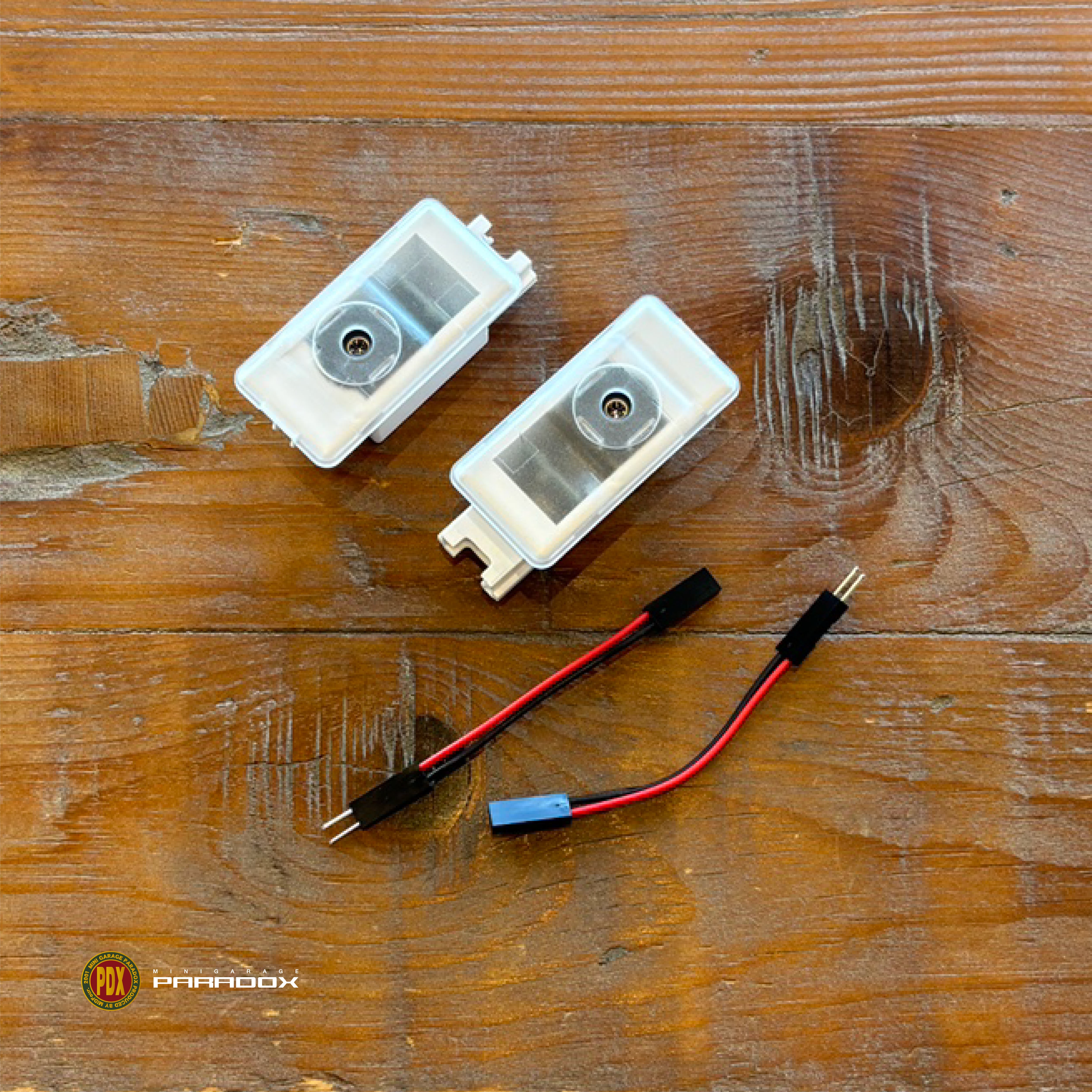 運転席ドアおよび助手席ドア下にあるカーテシランプを交換することでお好みの柄を投影することができます。