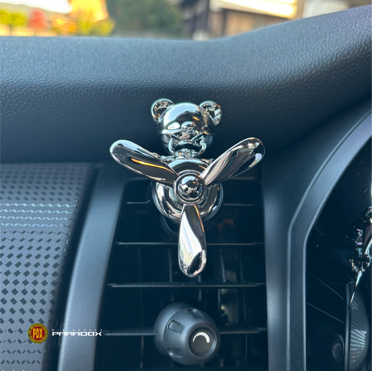 風を受けてプロペラが回転し、まるでクマさんがヘリで飛んでいるかのような光景に♪