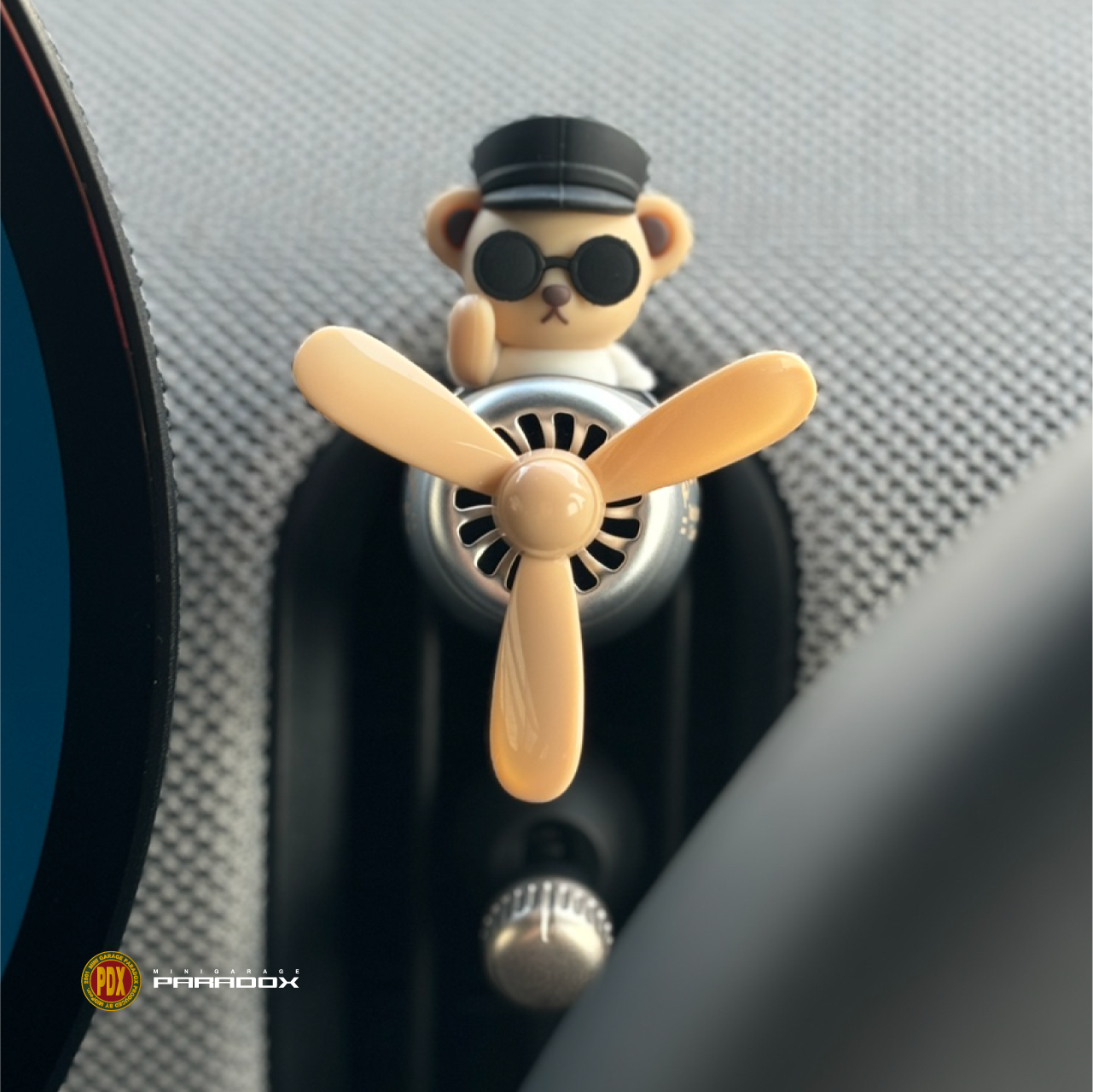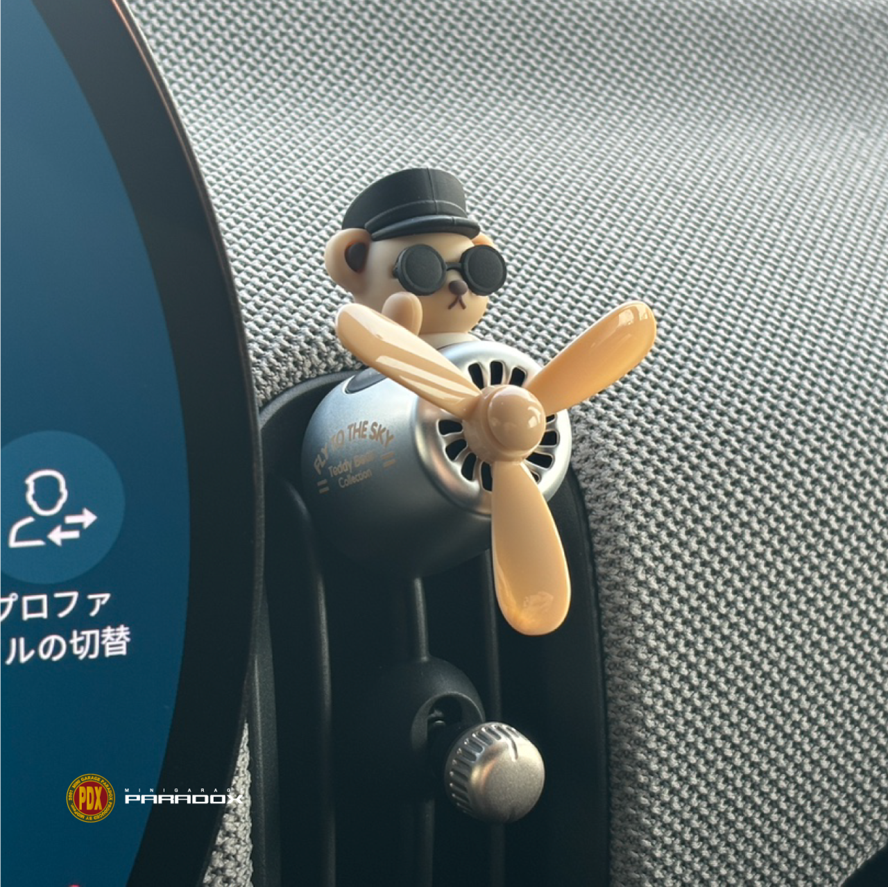風を受けてプロペラが回転し、まるでクマさんがヘリで飛んでいるかのような光景に♪