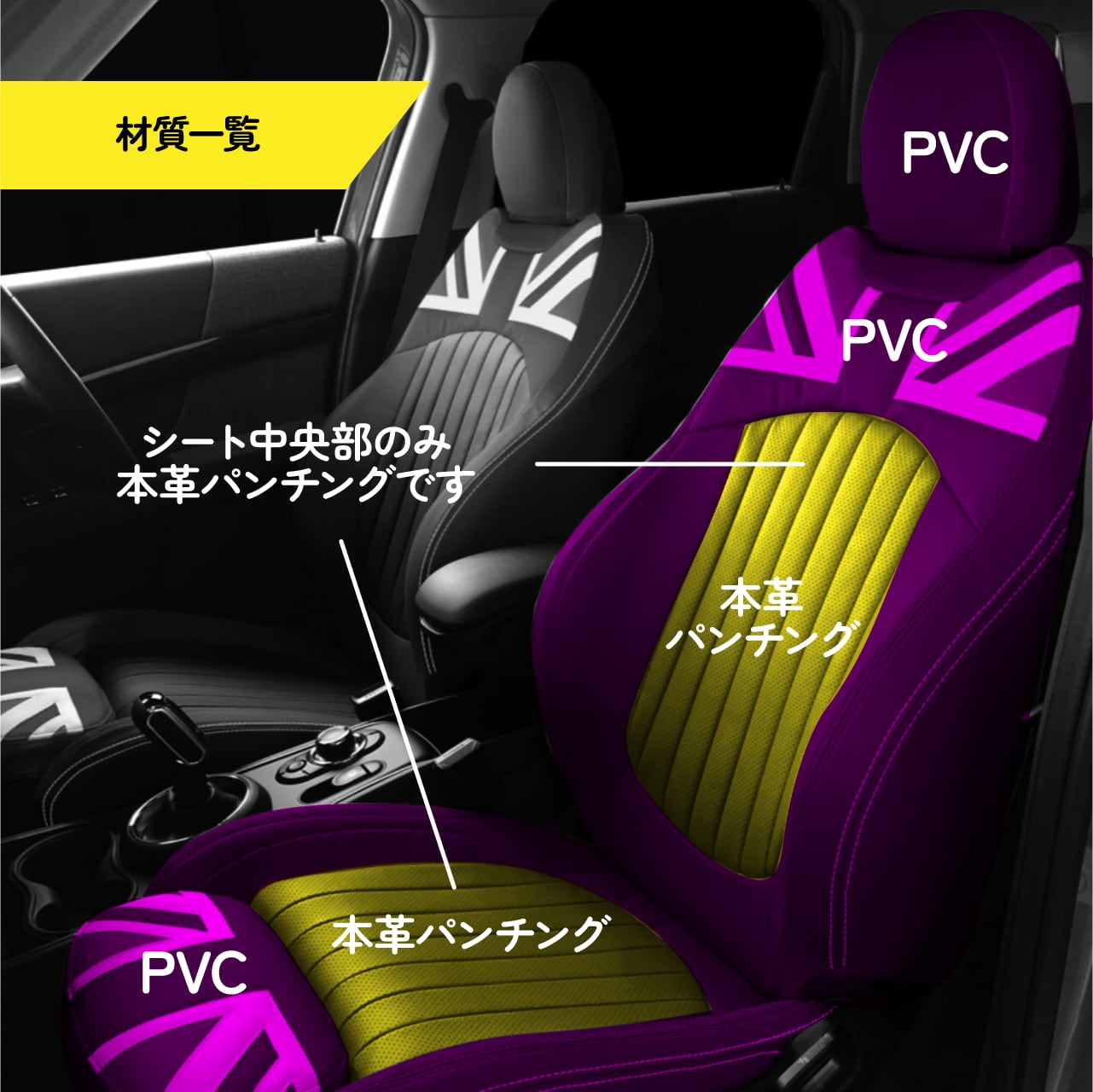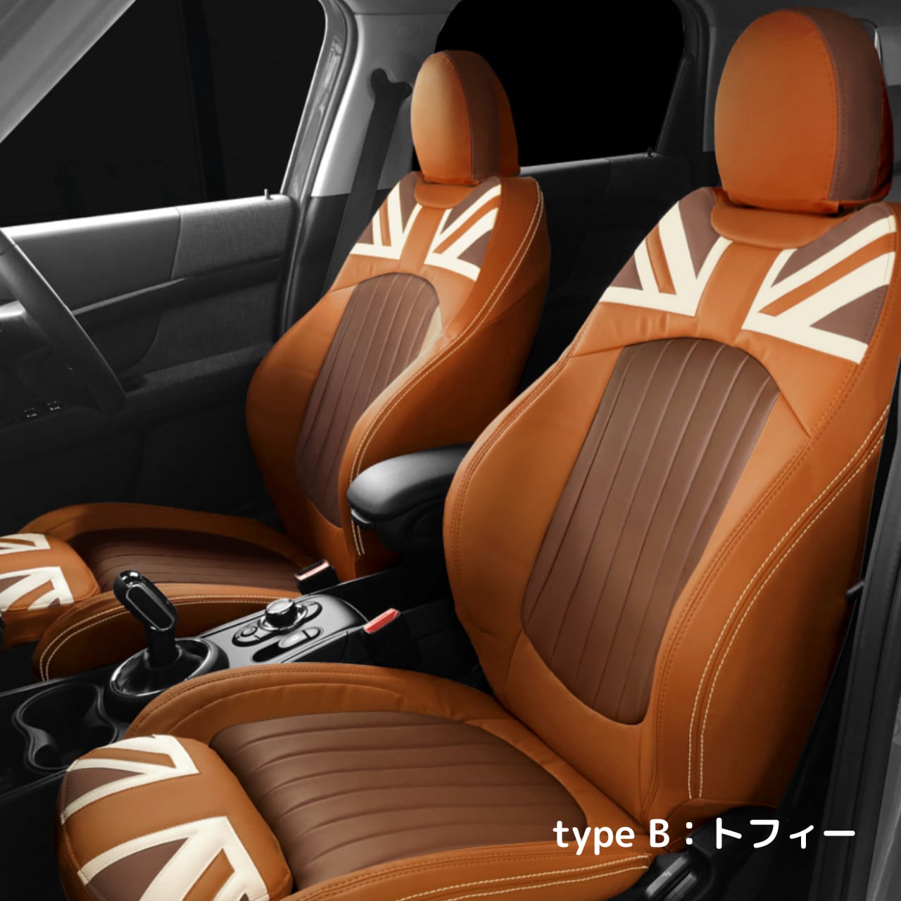 パークレーンタイプをベースに、ユニオンジャック柄をあしらい、シート中央部に本革パンチング素材を起用したモデルです。