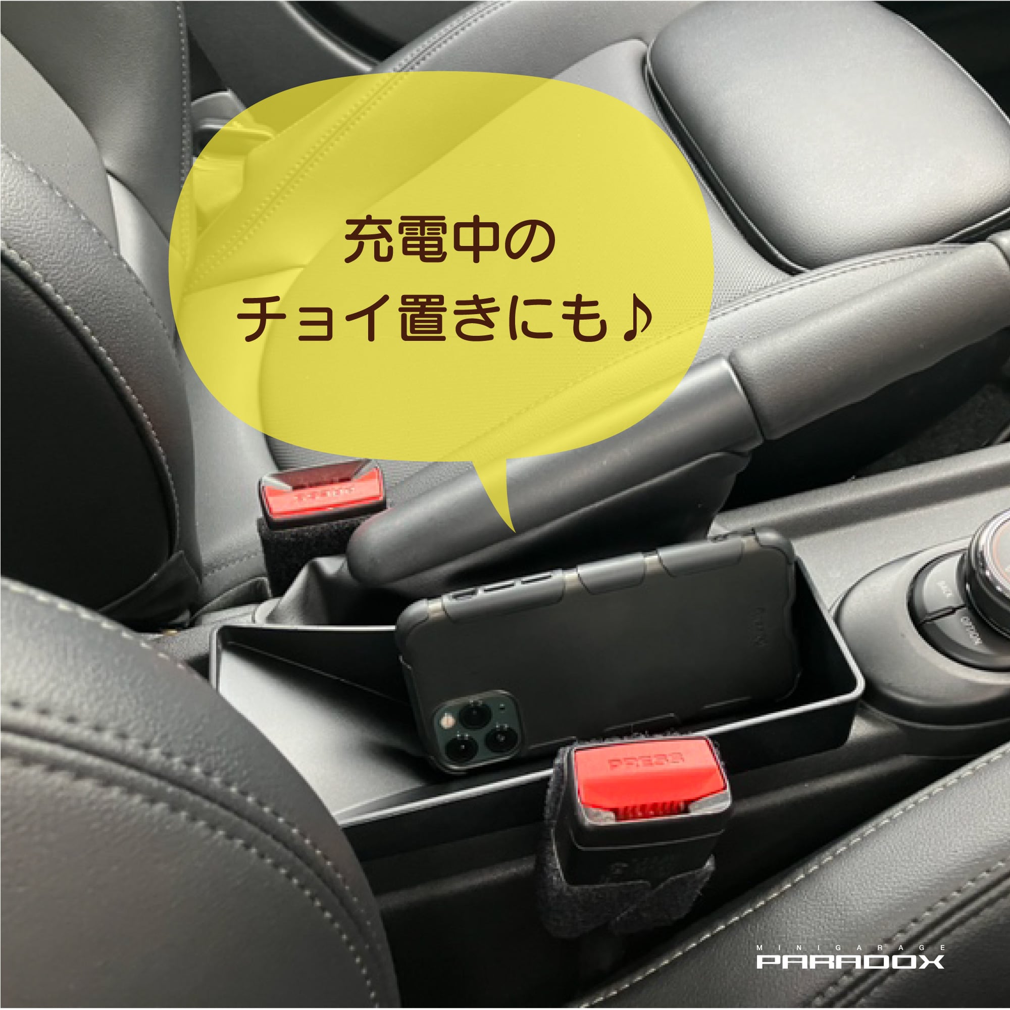 ボックスをセンターコンソールに貼り付ければ収納力がアップ。